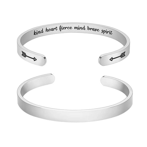 Inspirational Bracelet for Women Best Friends Bracelets Kind Heart Fierce Mind Brave Spirit Encouragement Cuff Bangle Motivational Gift Birthday Gifts Idea for Her Teen Girls Secret Message Hidden