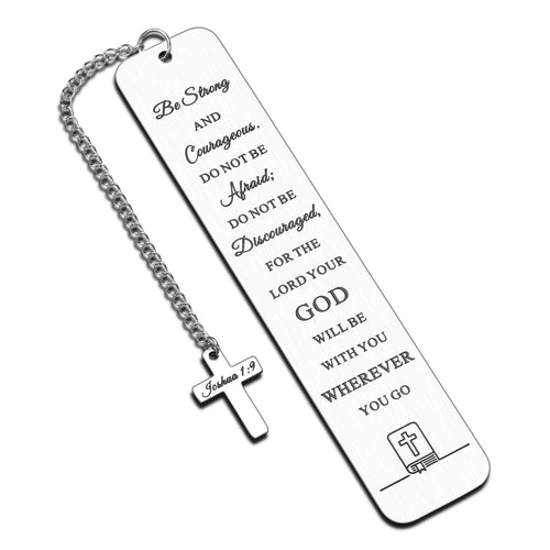 Inspirational Christian Gifts for Women Men Bible Verse Bookmark with Cross Pendant for Teenage Boys Girls Be Strong and Courageous Book Maker Son Daughter Christmas Birthday Graduation Present